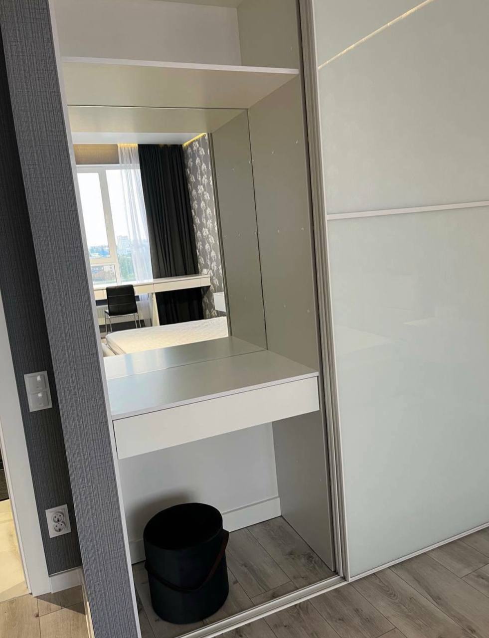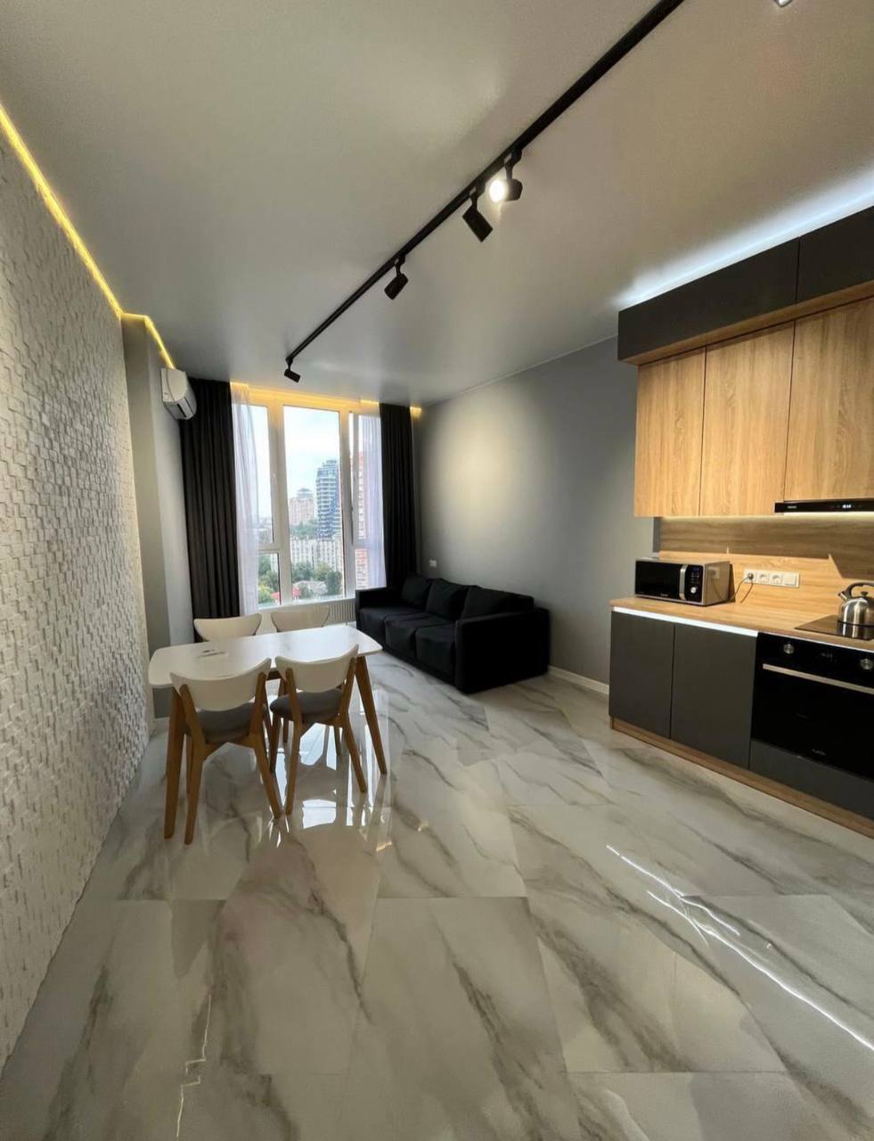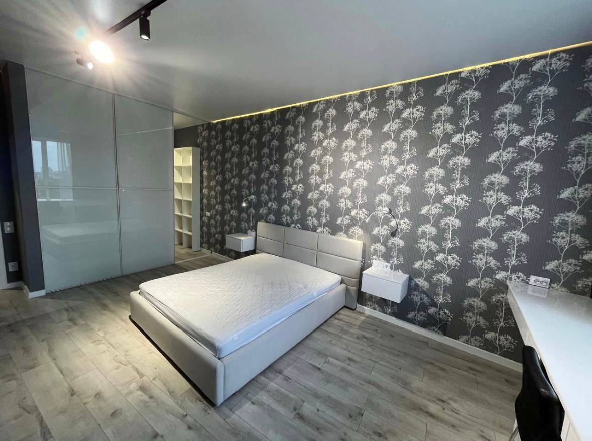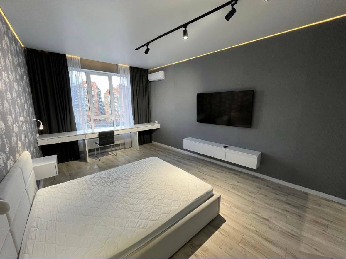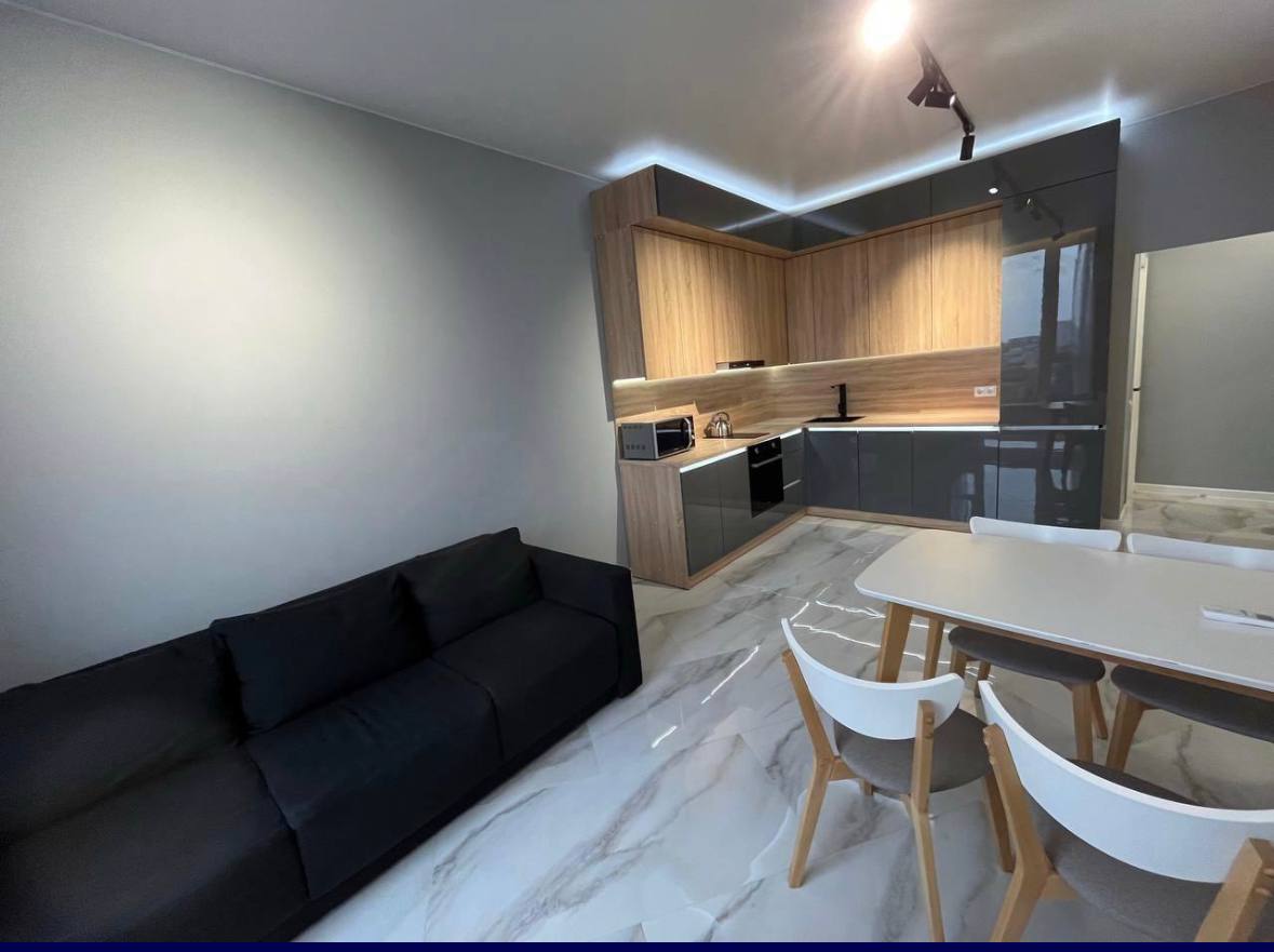 Стильна квартира з новим ремонтом, просторою кухнею - студією та ізольованою кімнатою; здається вперше. Тут є все необхідне для комфортного проживання: панорамні вікна, гардероб, двоспальне ліжко з тумбами. Кухня обладнана сучасною побутовою технікою: газовою плитою, духовою шафою, посудомийною машиною і холодильником. Також є телевізор і кондиціонер. Будинок розташований біля добре розвиненої інфраструктури. До станції метро 10 хвилин ходьби.